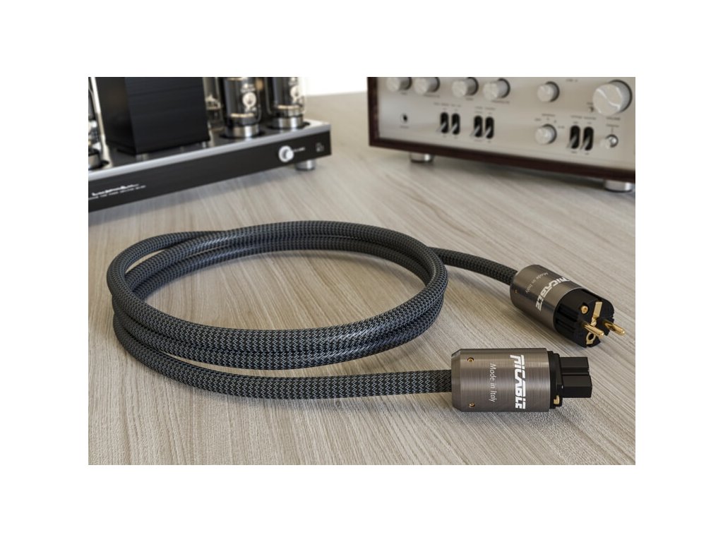 Vlastnosti Konektorů: feritový blok s integrovaným potlačením rušení, měděné monoblokové tělo, pozlaceno specifickou technikou elektrolýzy zlato / měď, amagnetické pouzdro, 10A IEC zástrčka, 16A Schuko zástrčka